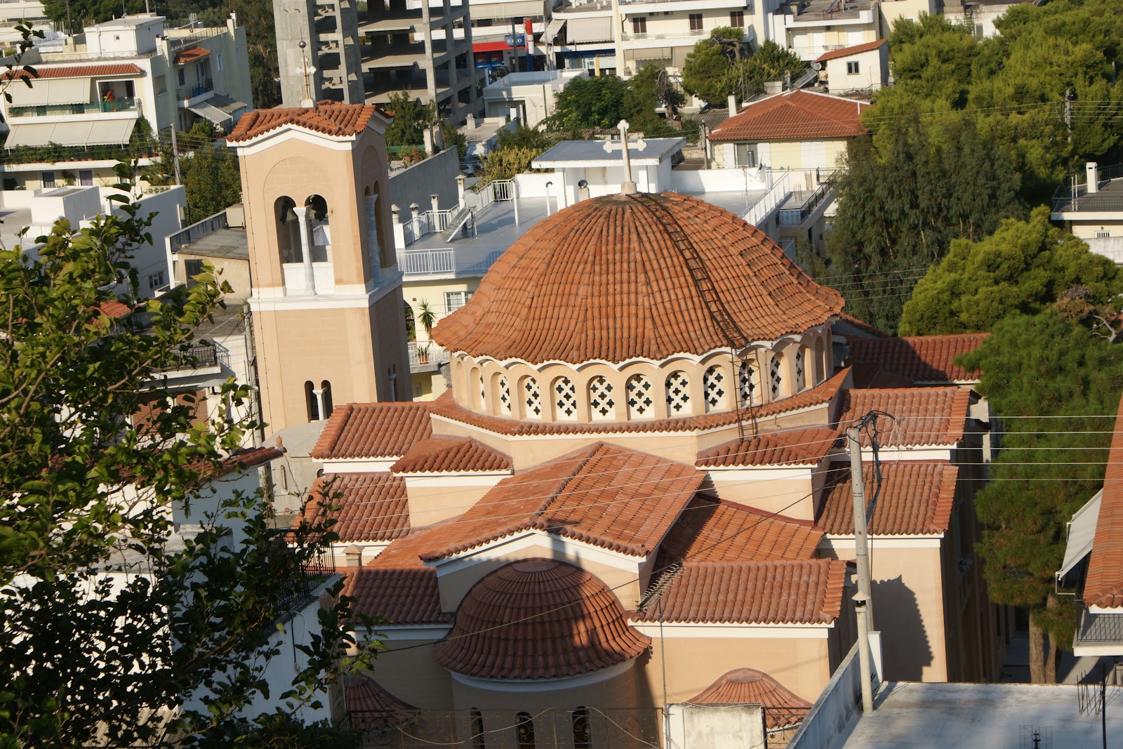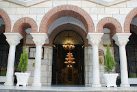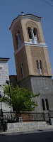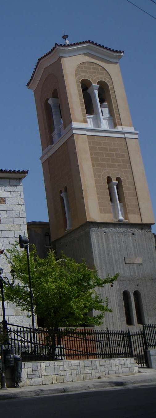 Δεξιά το έτος 2003, οικοδομήθηκε το επιβλητικό κωδωνοστάσιο, που συνδέεται με τον Ναό και του οποίου η κατασκευή δεν έχει ακόμη ολοκληρωθεί.