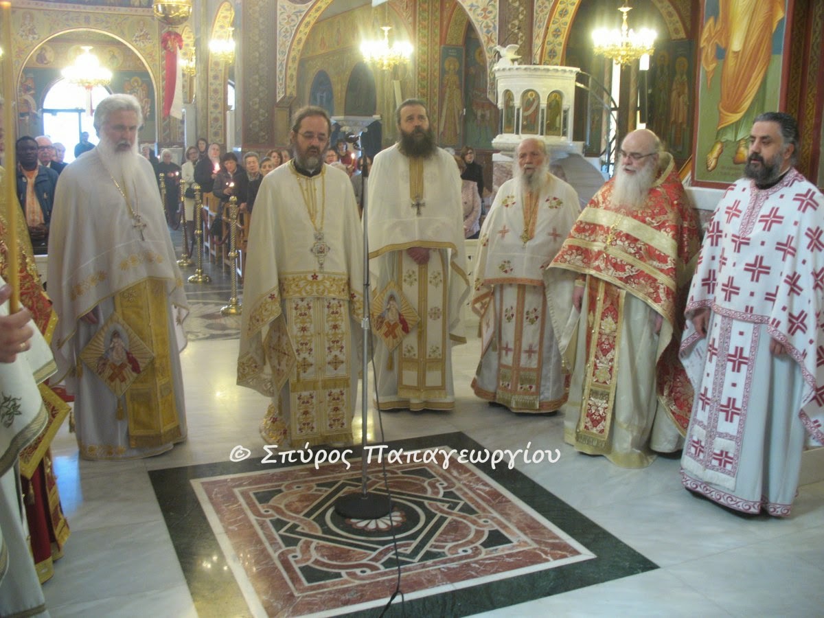 Της ευχαριστιακής συνάξεως προεξήρχε ο Ιεροκήρυκας της Ιεράς Μητροπόλεως Κηφισίας, Πανοσ. Αρχιμ. π. Νικάνωρ Καραγιάννης, ο οποίος κήρυξε και το Θείο Λόγο. Συμμετείχαν ιερείς από την Ιερά Αρχιεπισκοπή Αθηνών, το εξωτερικό καθώς και ο προϊστάμενος του Προσκηνύματος, Πανοσ. Αρχιμ. π. Ιερόθεος Καλογερόπουλος, Πρωτοσύγκελλος της Μητροπόλεως Μεσογαίας & Λαυρεωτικής.