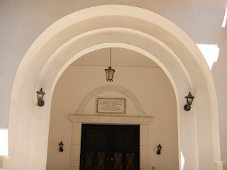 Δεξιά της κυρίας εισόδου, υπάρχει εντοιχισμένο εικονοστάσι με την εικόνα του Αγίου Μανδηλίου. Στο πάνω μέρος του βρίσκεται, κατ’ εντολήν του Κυρίου λαξευμένο τμήμα της Αγίας Πέτρας.