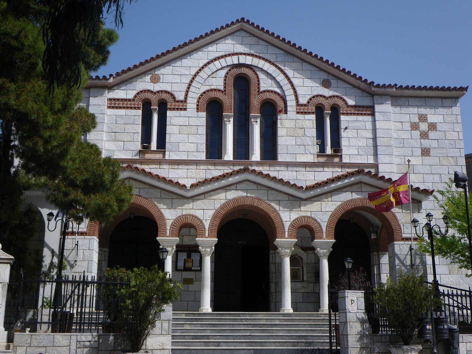 Δεξιά το έτος 2003, οικοδομήθηκε το επιβλητικό κωδωνοστάσιο, που συνδέεται με τον Ναό και του οποίου η κατασκευή δεν έχει ακόμη ολοκληρωθεί.