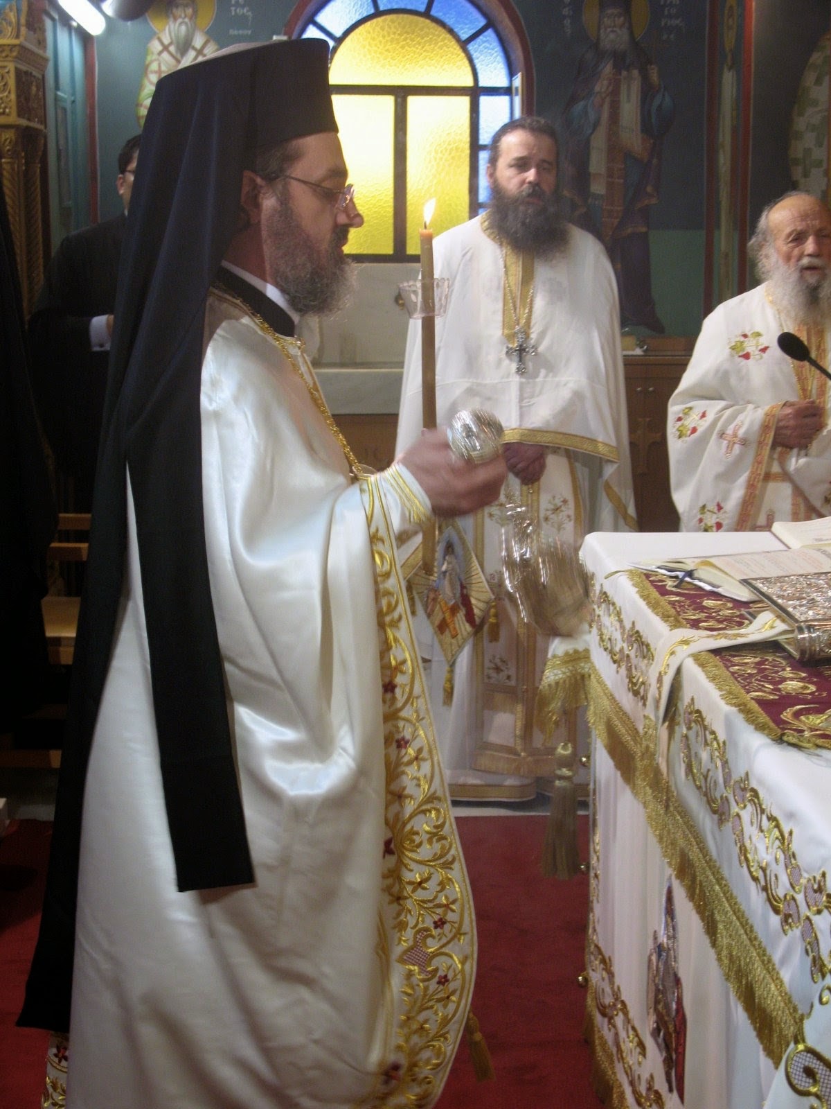 Της ευχαριστιακής συνάξεως προεξήρχε ο Ιεροκήρυκας της Ιεράς Μητροπόλεως Κηφισίας, Πανοσ. Αρχιμ. π. Νικάνωρ Καραγιάννης, ο οποίος κήρυξε και το Θείο Λόγο. Συμμετείχαν ιερείς από την Ιερά Αρχιεπισκοπή Αθηνών, το εξωτερικό καθώς και ο προϊστάμενος του Προσκηνύματος, Πανοσ. Αρχιμ. π. Ιερόθεος Καλογερόπουλος, Πρωτοσύγκελλος της Μητροπόλεως Μεσογαίας & Λαυρεωτικής.